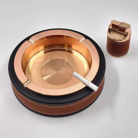 סט מאפרה ומצית עור- חום