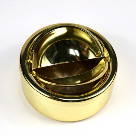 מאפרה עגולה עם פתיחת לחיצה – נחושת צהובה