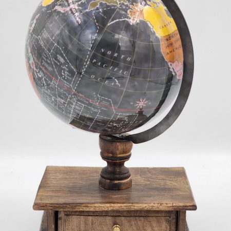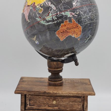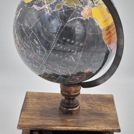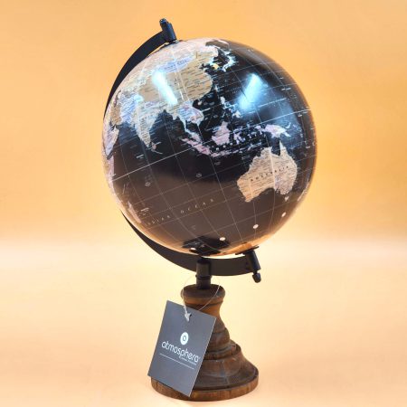 גלובוס שחור על מעמד עץ