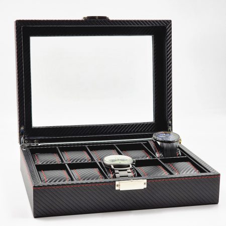 קופסא ל-10 שעונים תפפירה באדום – דמוי קרבון