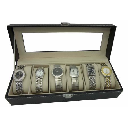 קופסת עור לאכסון 6 שעונים