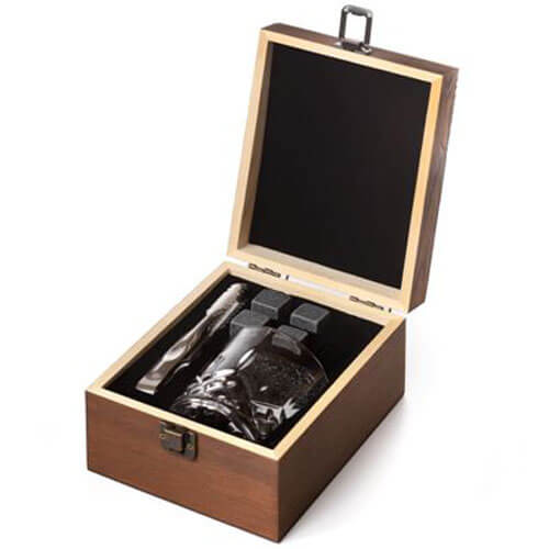 מארז וויסקי מהודר מעץ משולב בכוס ו- 4 אבני קרח